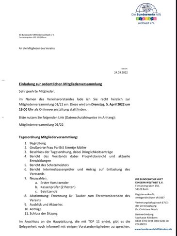 Am 07.10.2021 fand unsere erste Mitgliederversammlung nach längerer Zeit statt. An zwei Präsenzorten im BMVg Berlin und Bonn sowie via online-Übertragung, wurden die wichtigen Neuwahlen vollzogen.